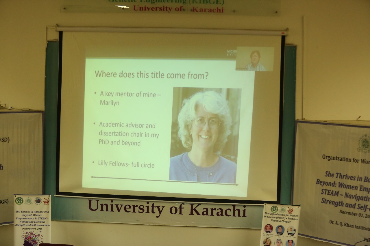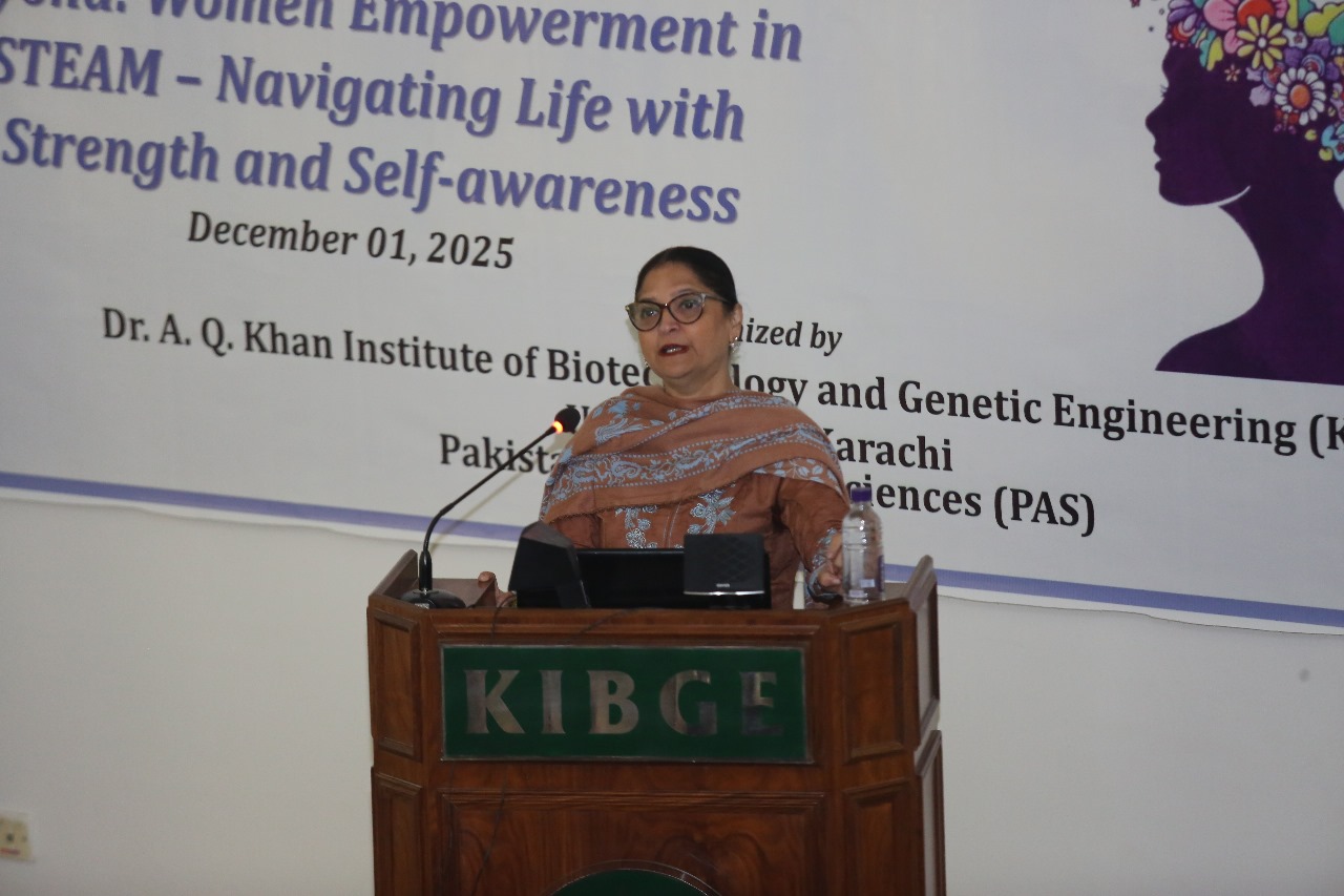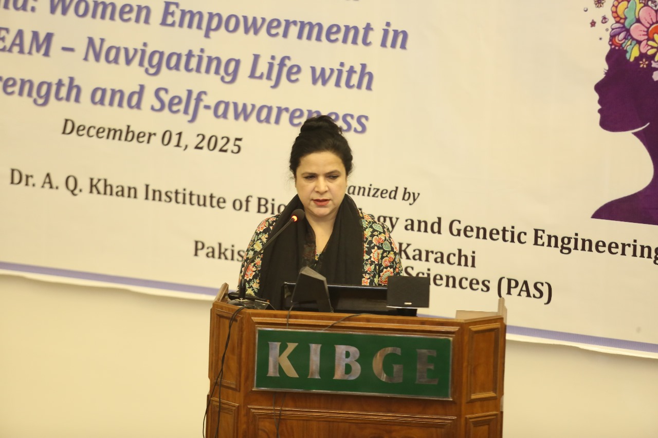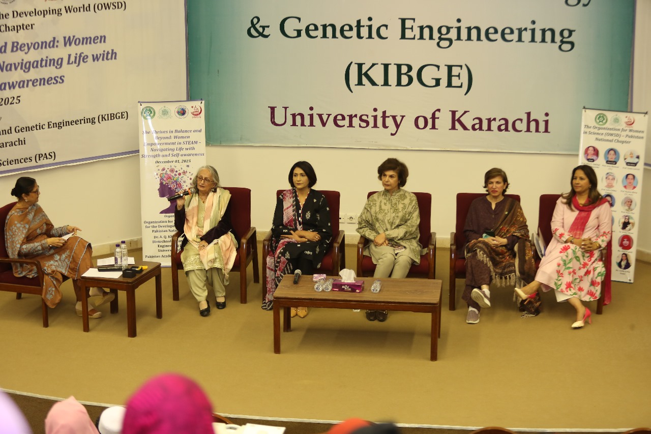 The Organization for Women in Science for the Developing World (OWSD) Pakistan National Chapter, in collaboration with Pakistan Academy of Sciences (PAS), organised “She Thrives in Balance and Beyond: Women Empowerment in STEAM – Navigating Life with Strength and Self-Awareness,” at Dr. A. Q. Khan Institute of Biotechnology and Genetic Engineering (KIBGE), University of Karachi. The program, held on December 01, 2025, focused on women’s mental well-being, self-awareness, and professional empowerment within STEAM fields.
