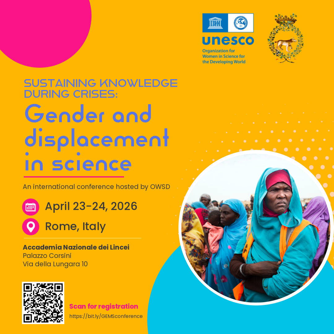 The Organization for Women in Science for the Developing World (OWSD) warmly invites you to the conference “Sustaining Knowledge during Crises: Gender and Displacement in Science,” organised within the framework of the WISDOM project that supports displaced female students and researchers.