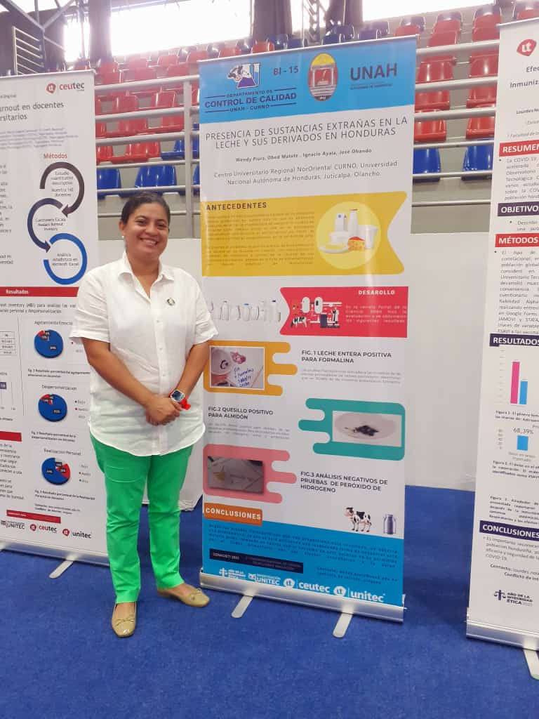 La Dra. Yvelice Castillo, nuestra presidenta, participó de un conversatorio sobre Integridad Ética en la Era de la Aceleración Tecnológica y la importancia de la participación de las mujeres en la ciencia hondureña. Además, la Dra. Wendy Piura presentó su trabajo titulado: Presencia de sustancias extrañas en la leche y sus derivados en Honduras, como parte de las investigaciones que desarrolla en el Centro Nororiental de la Universidad Nacional Autónoma de Honduras, CURNO - UNAH.