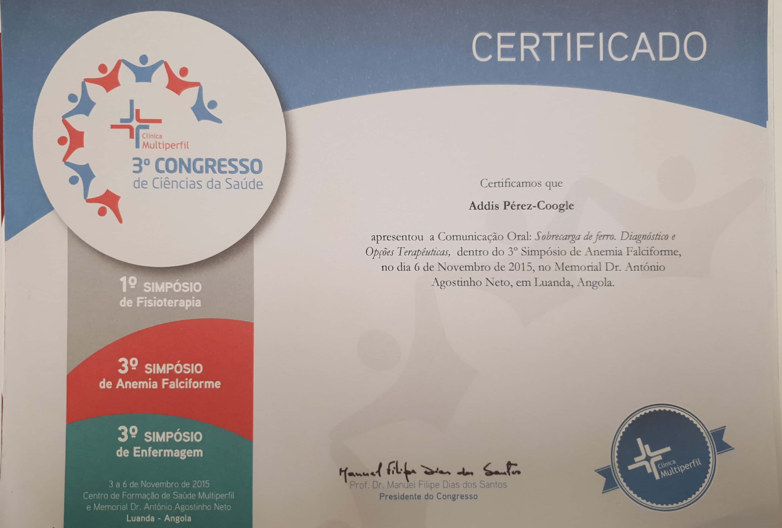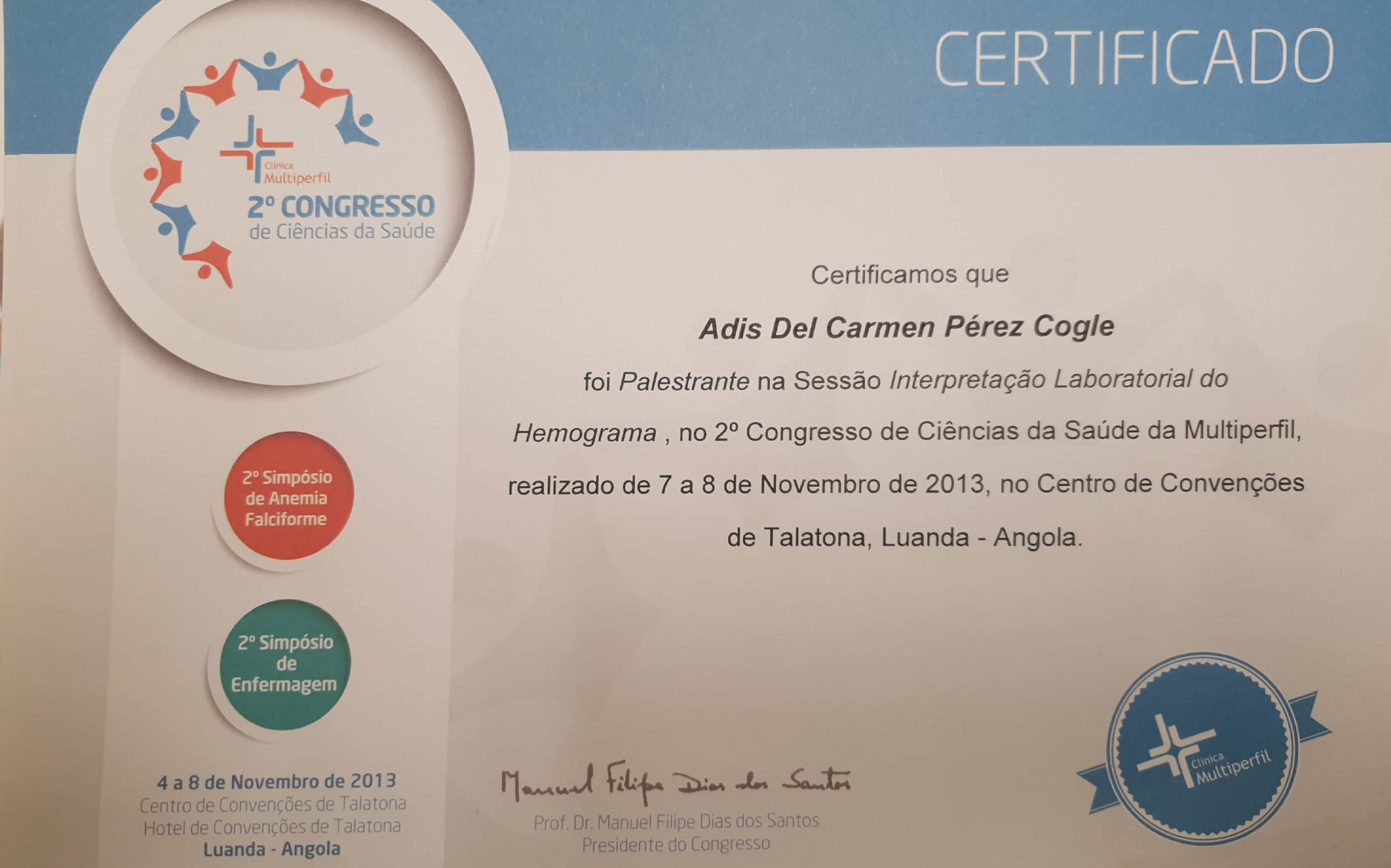 IX Jornada Latinomaericana de Hematologia, Imunologia e Medicina Transfusional , IV taller Internaciobal Hemofilia, IIIConferencia del Caribe dobre Drepanocitosis, III Simposio Internacional Medicina Regenerativa, VII Congresso Cubano Hematologia
