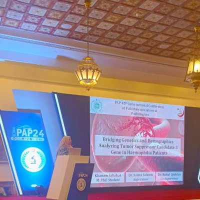 Khanam’s current research focuses on the genetic analysis of hemophilia patients, where she has gained hands-on expertise in sample collection, phlebotomy, DNA extraction, PCR, and gel electrophoresis. Alongside her research, she has earned certifications in statistical data analysis and shared her knowledge as a lecturer at Abu Zafar Institute of Medical Sciences and Dr. Ruth Pfau College of Nursing.