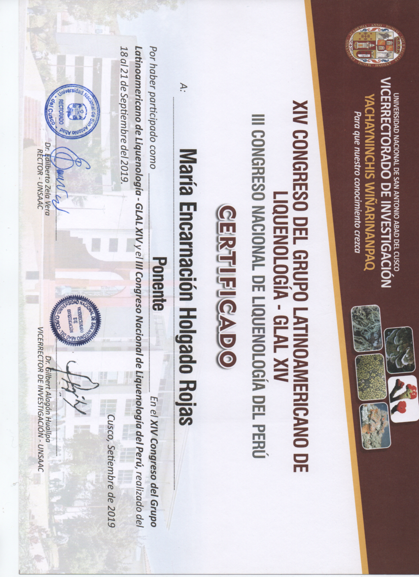 XIV Congreso del Grupo Latinoamericano de Liquenologia GLAL XIV 09/2019