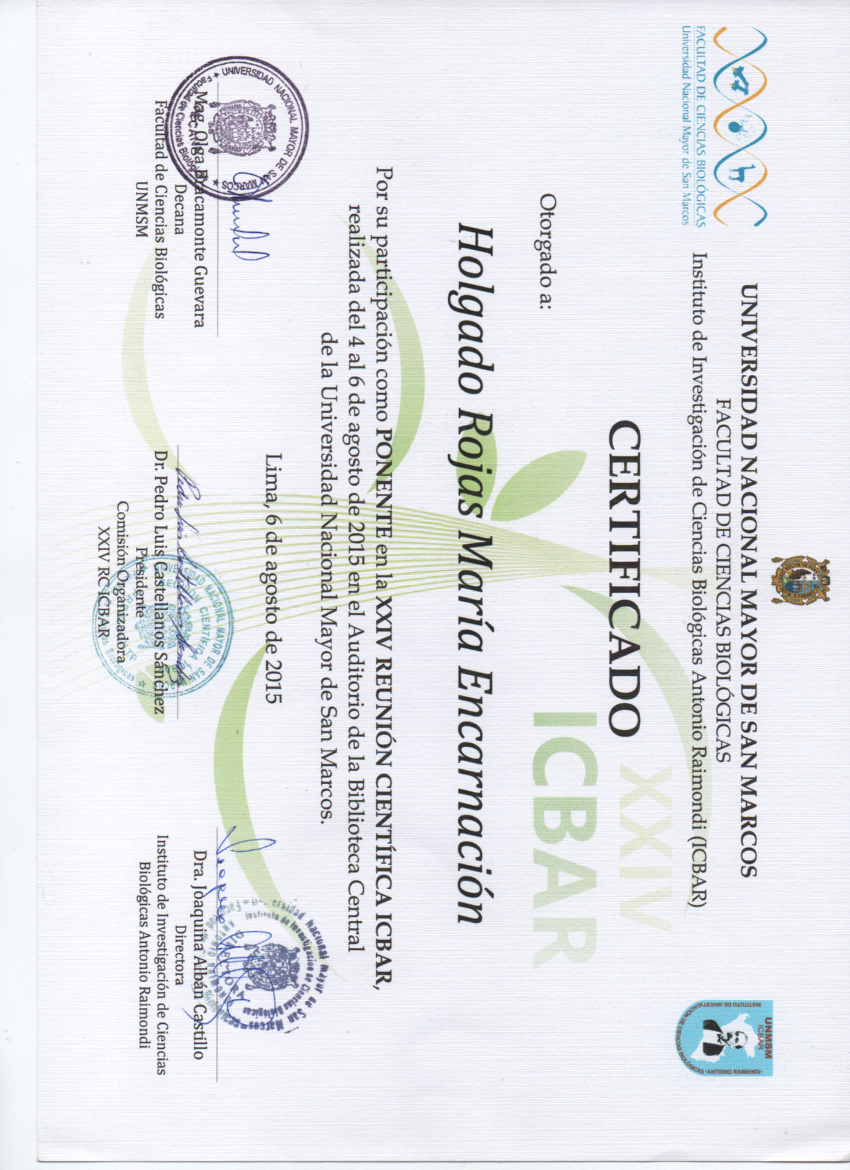 XXIV Reunion Cientifica ICBAR, Universidad Nacional Mayor de San Marcos.