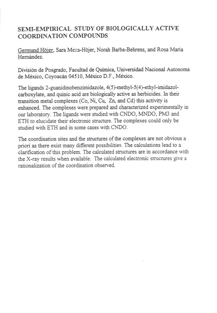 Barba-Behrens, N.; Höjer, G.; Meza-Höjer, S.; R.M. Hernández. Relación estructura-actividad biológica de compuestos de coordinación. Revista de la Sociedad Química de México 1993, 37(6), 72.