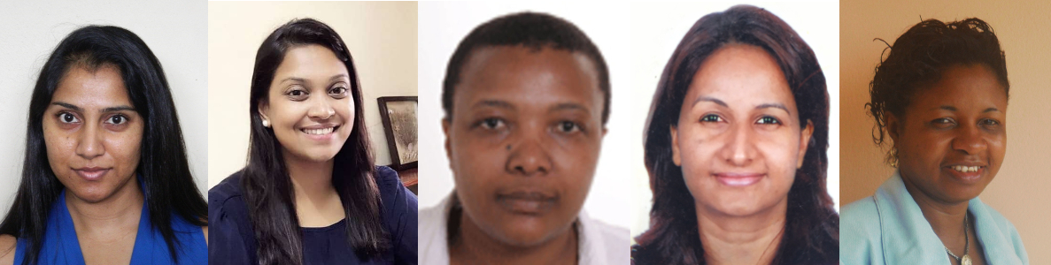 L-R: Judith Georgette Makombu-Ngueguim, Rosemary Nalwanga, Maryse Dadina Nkoua Ngavouka, Siana Nkya, Shobha Poudel