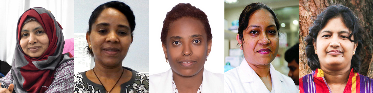 L-R: Nimanthi Jayathilaka, Dimanthi Vihanga Jayatilake, Lilian Daniel Kaale, Hemu Kharel Kafle, Emilia Enjema Lyonga